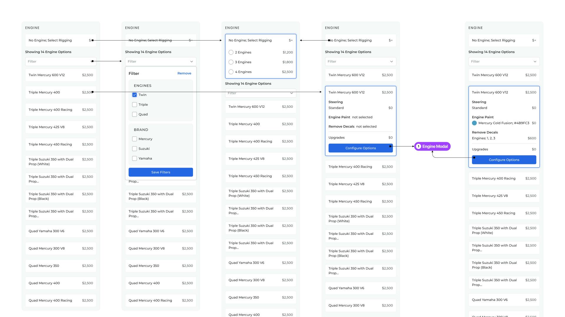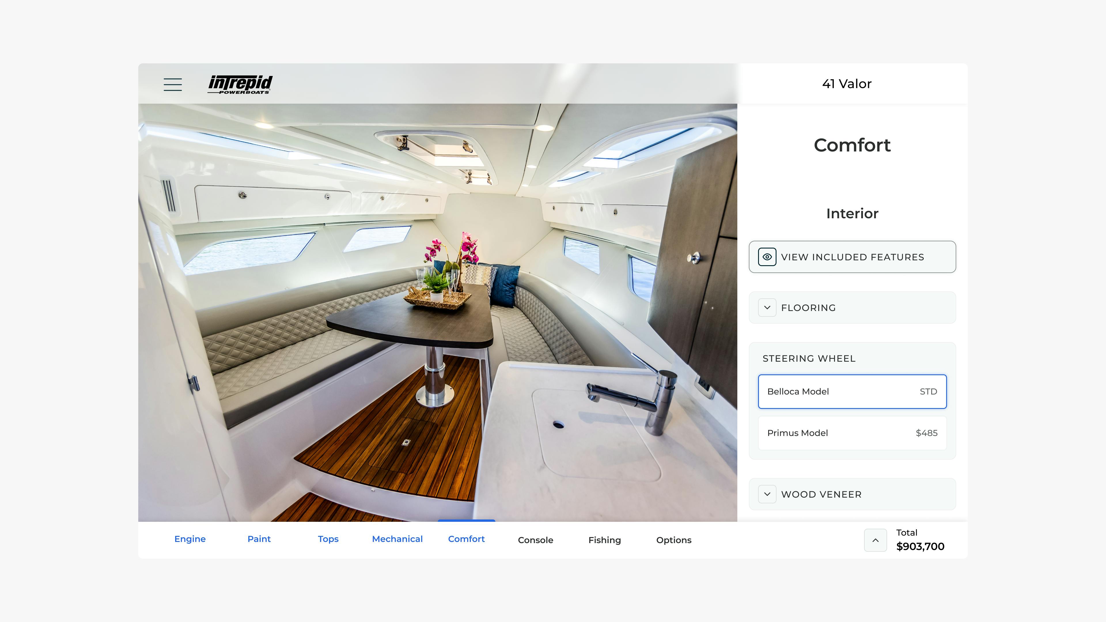 Every Intrepid purchase is a custom experience, shaped by a wide range of performance, design, and configuration choices. The existing tools lacked true interactivity and weren’t built for speed, clarity, or scale. What Intrepid needed was a UX/UI framework that could balance flexibility, complexity, and ease of use—while also creating a foundation that could extend to other brands within the MarineMax portfolio.